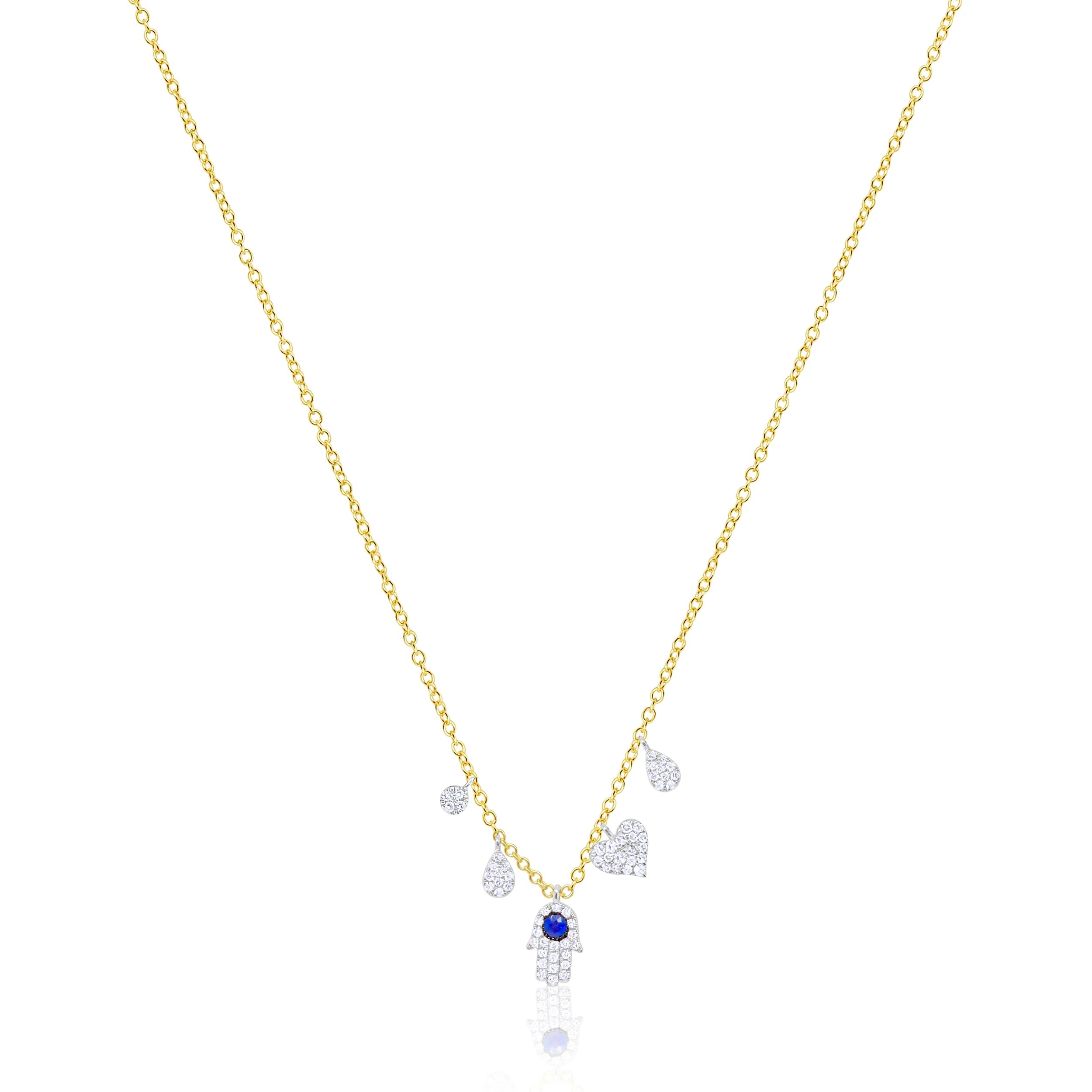 HAMSA HEART DIAMOND CHARM NECKLACE