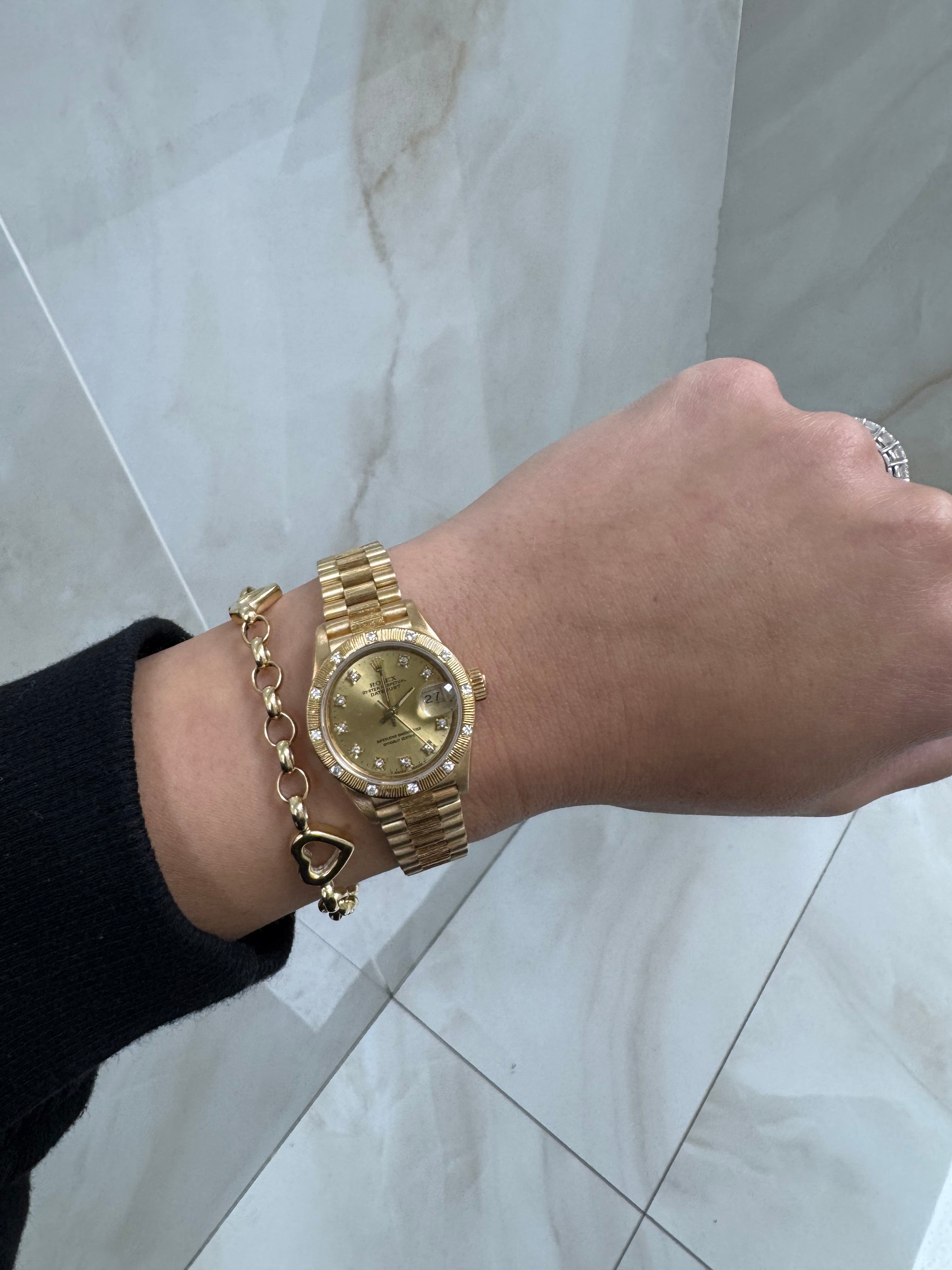 ROLEX PRESIDENT YELLOW GOLD DATEJUST BARK FINISH 28 MM