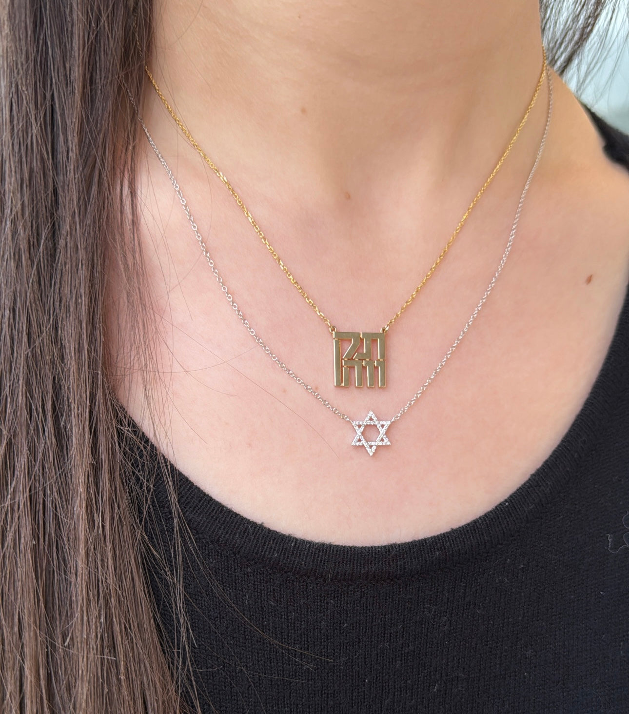 This one-of-a-kind 14k yellow gold Tikvah necklace symbolizes the resilience, unity, and unwavering belief that hope will guide us through. This is the power of the Jewish people—unbreakable, united, and always hopeful for a better future. Hatikvah, our national anthem, reminds us that hope is at the heart of who we are. For Israel, for the return of the hostages, and for the strength of the Jewish people—may we never lose faith.